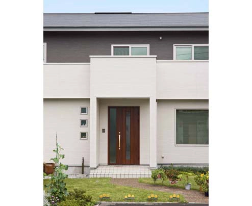 インナーガレージをあわせると幅広い間口が特徴の住宅を、モノトーンの張り分けでホワイトの配分を多くしたことで、重量感のある建物が軽やかなイメージをつくり出しました。